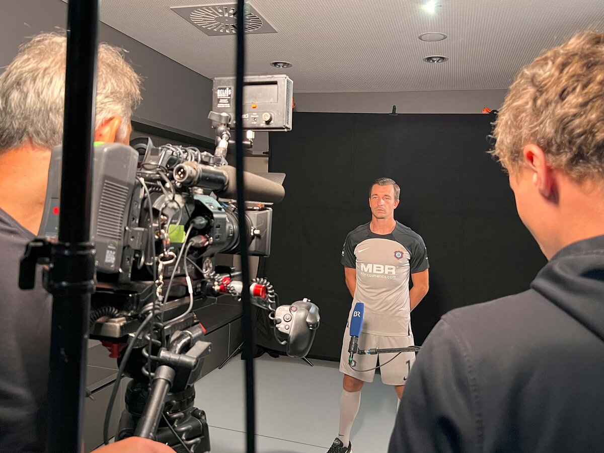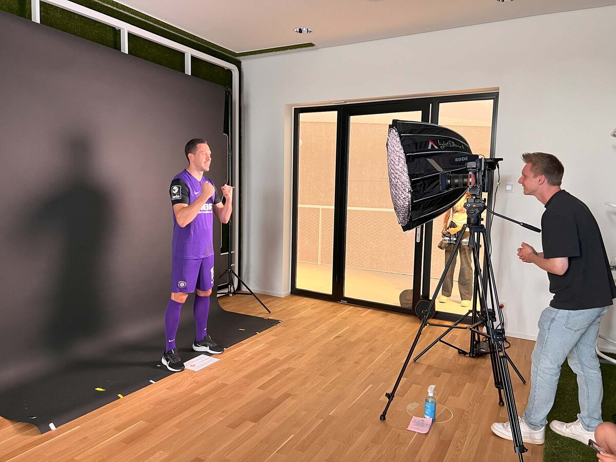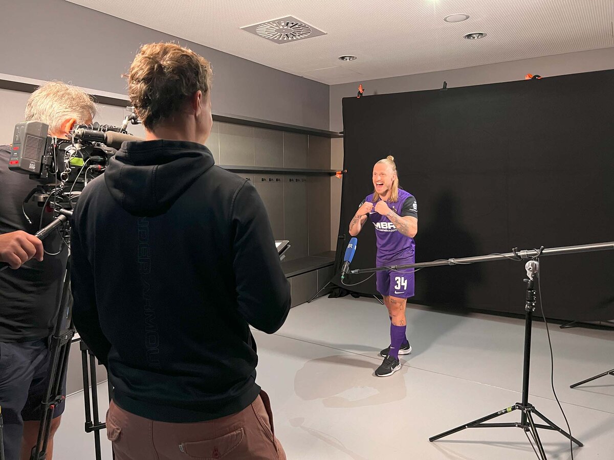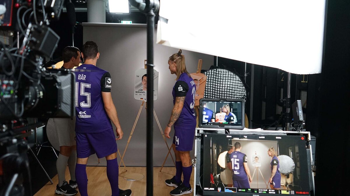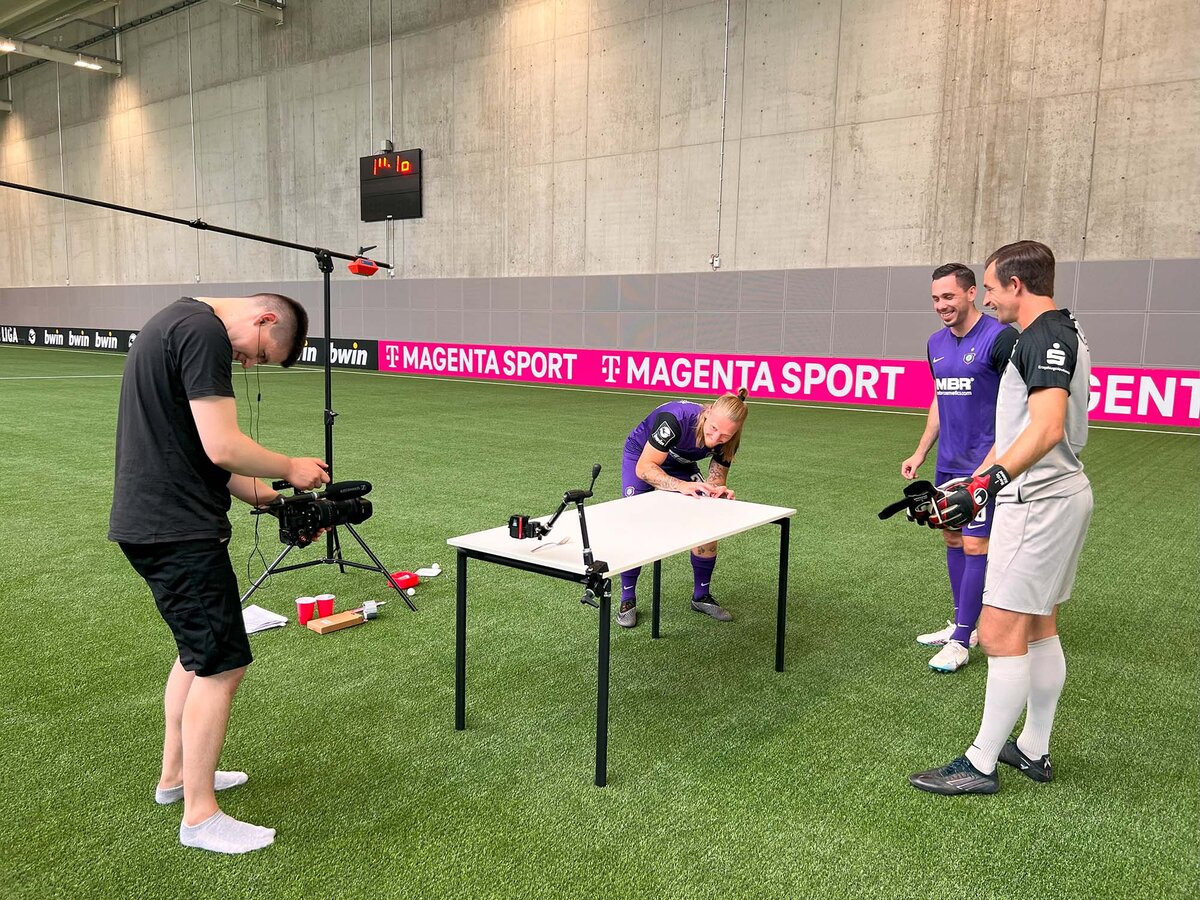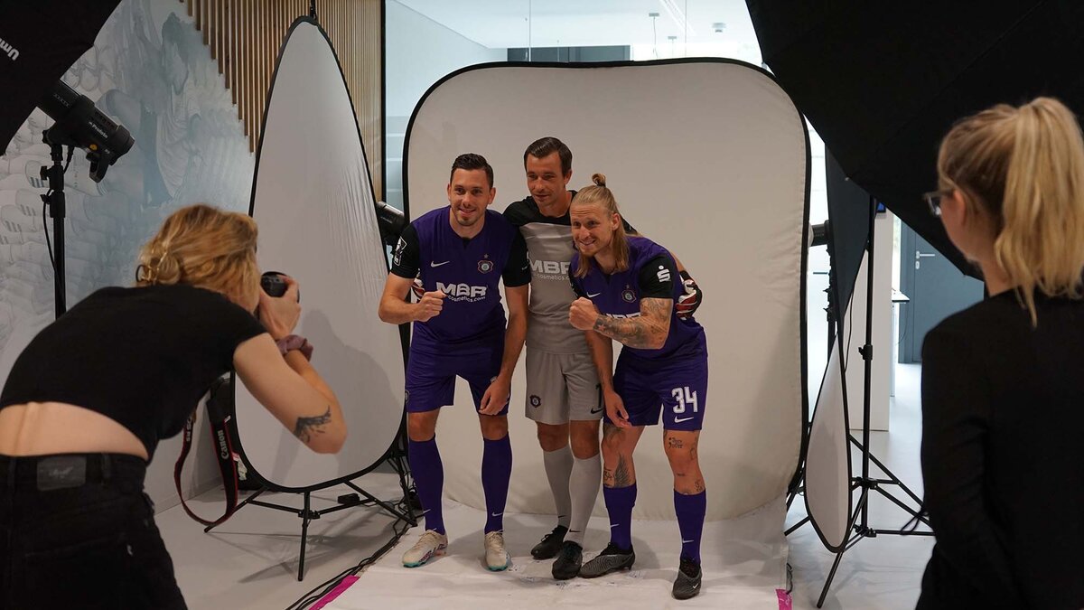 Als beim MDR schließlich alle Bilder und Videos im Kasten war Magenta-Sport an der Reihe. Dort wurden sowohl Einzel-, als auch Gruppenfotos geschossen, die im Laufe der Saison zur Bewerbung der Drittligaspiele genutzt werden.