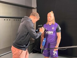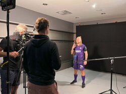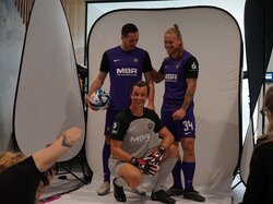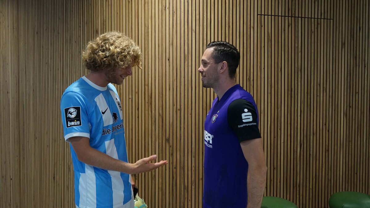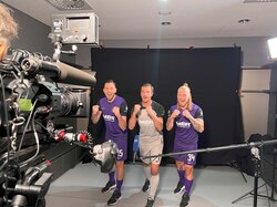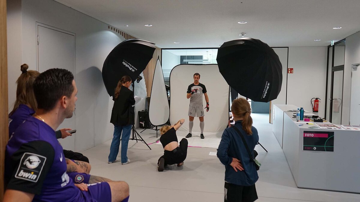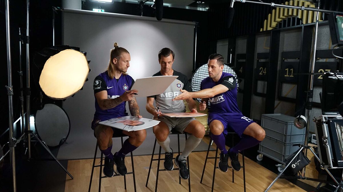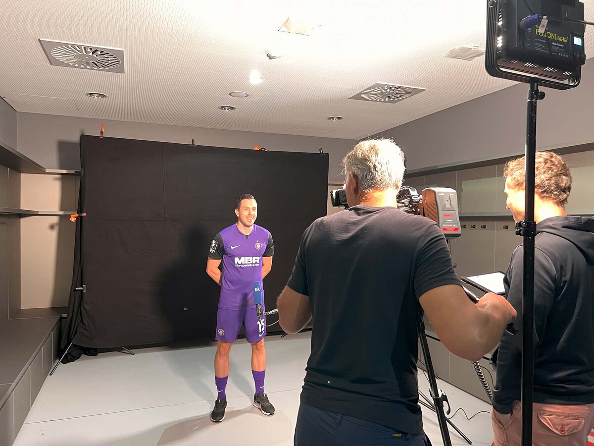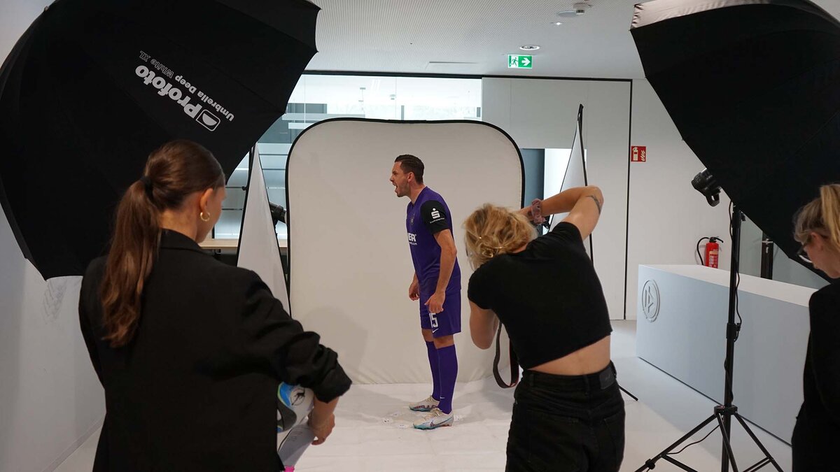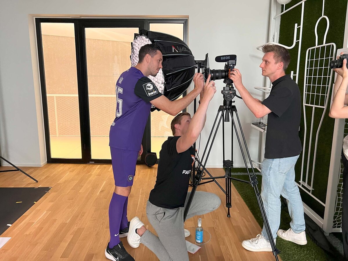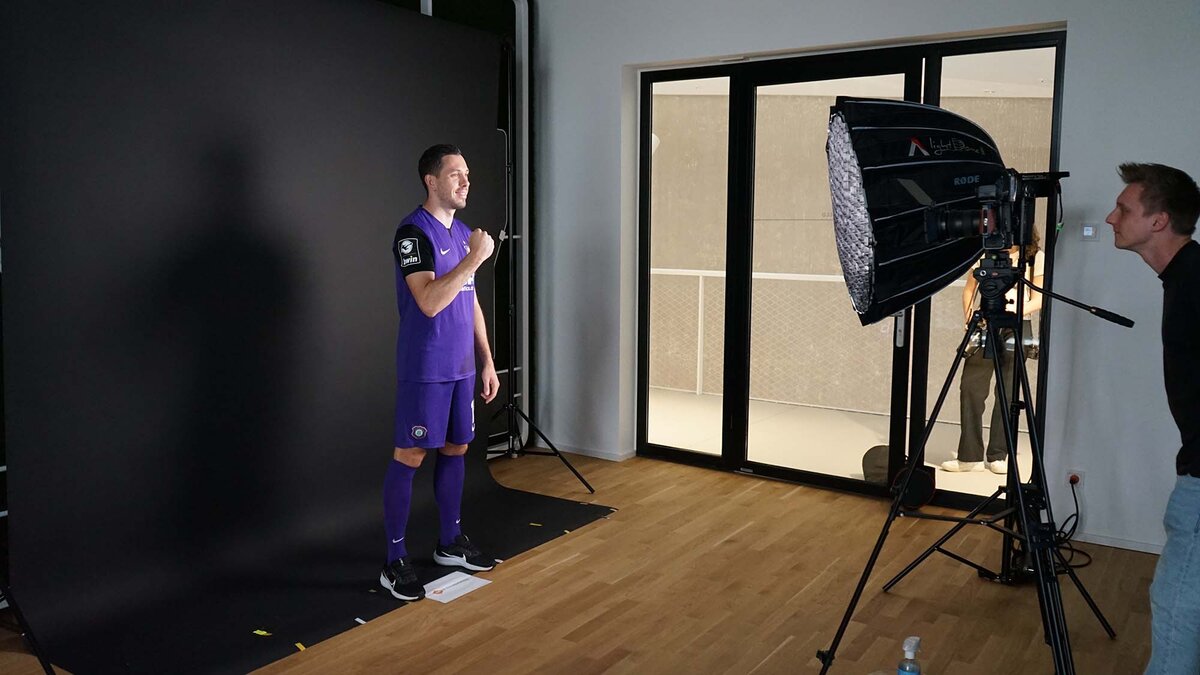 Als beim MDR schließlich alle Bilder und Videos im Kasten war Magenta-Sport an der Reihe. Dort wurden sowohl Einzel-, als auch Gruppenfotos geschossen, die im Laufe der Saison zur Bewerbung der Drittligaspiele genutzt werden.