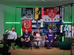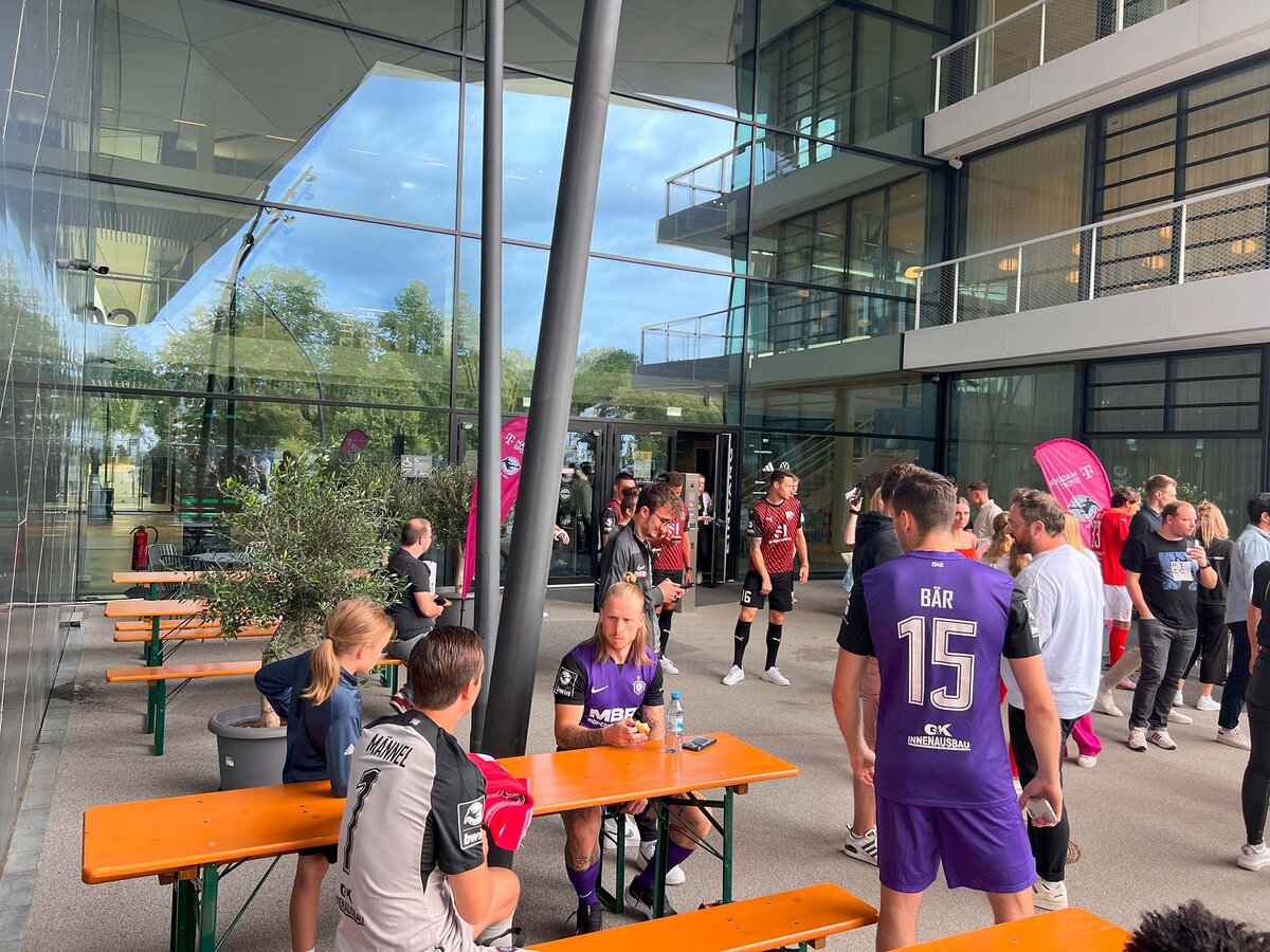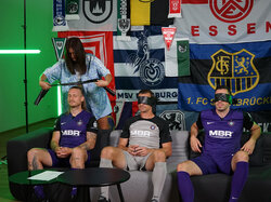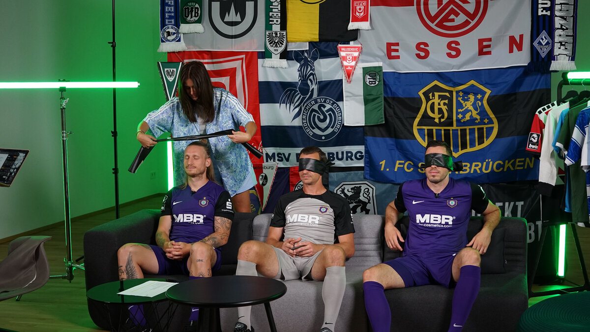 In der 2. Etage des DFB-Campus warteten schließlich weitere Partner der dritten Liga. Bei Fanzone.io wurden kurze Videosequenzen für die digitalen Sammelkarten unserer Mannschaft aufgenommen. Bei EA-Sports bewerteten die Jungs gegenseitig ihre neuen EA-FC 24 Karten und in der DFB-Lounge erwartete Robby Hunke die Veilchen-Kicker zum Talk. Nach dem knapp 10-minütigen Talk über das Leben als Profifußballer und unseren Verein mussten Marvin, Martin und Marcel noch mit verbundenen Augen Fragen beantworten. Wenn ihr also beispielsweise wissen wollt, wer von den dreien den besten Style hat, dann werdet ihr das im Laufe der Saison auf dem YouTube-Kanal des DFBs sehen können.