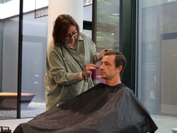 Danach stand auch direkt die erste Station an. Es ging zu Alex Küpper ins Studio der öffentlich-rechtlichen Fernsehsender. Dort wurden kurze Einspieler und Ansager gedreht, die im Laufe der Saison bei Sport im Osten ausgestrahlt werden. Unterbrochen wurde die erste Session durch einen Feueralarm. Der ganze DFB-Campus traf sich kurzerhand auf dem Vorplatz. Nach zehn Minuten gab es jedoch Entwarnung und unsere Männer konnten weitermachen.