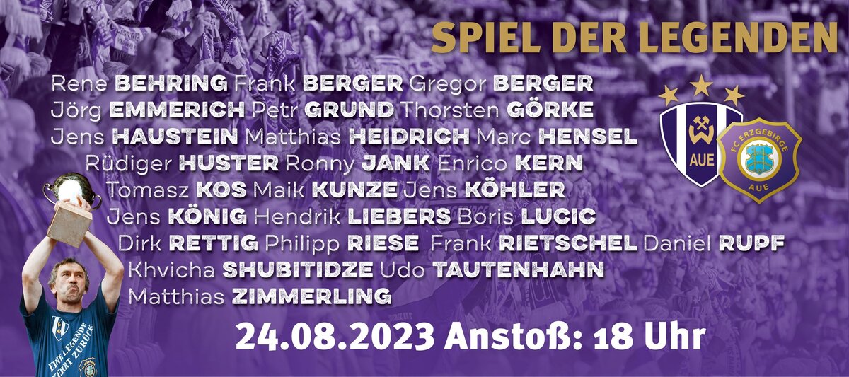 Zu einem sensationellen „Spiel der Legenden” kommen populäre Auer Fußball-Asse am 24. August ins Erzgebirgsstadion. Das Match findet im Rahmen der Festtage „850 Jahre Aue” und in Erinnerung an den ersten Zweitliga-Aufstieg vor zwanzig Jahren statt. Insbesondere wird damit eine Legende geehrt, die im Januar 2022 verstarb, bei den Auer Fußballfreunden jedoch unvergessen bleibt: Gerd Schädlich. Dabei sind an dem Donnerstagabend Spieler der Aufstiegsmannschaft von 2003 und FCE-Idole der folgenden fünf Zweitligajahre genauso wie Wismut-Kicker. Freuen wir uns auf Holger Erler, Tomasz Kos, Udo Tautenhahn, Jürgen Escher, Jens König, Hendrik Liebers, Khvicha Shubitidze, Ronny Jank, Frank und Gregor Berger plus viele andere…
