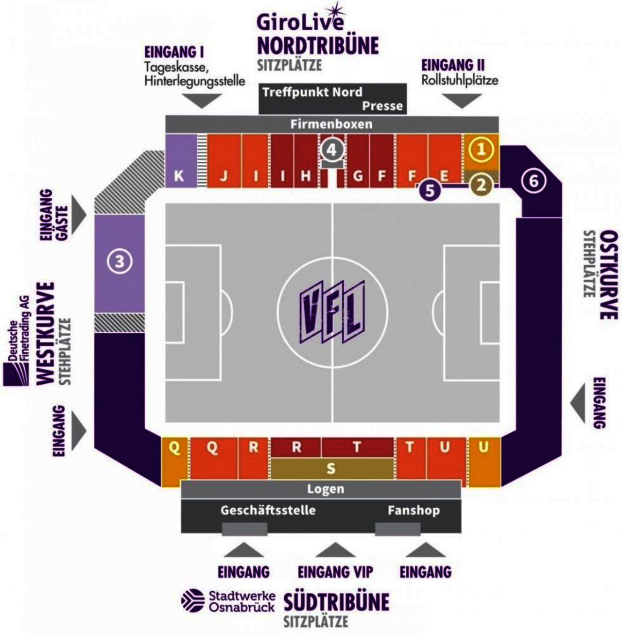 Während des gesamten Aufenthaltes im Stadion an der Bremer Brücke haben sich die Gästefans an die Stadionordnung zu halten und den Aufforderungen und Anweisungen des gesamten Ordnerpersonals Folge zu leisten. Die detaillierte Stadionordnung finden Sie unter: https://www.vfl.de/verein/stadion/ordnung.html