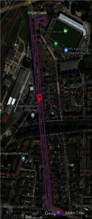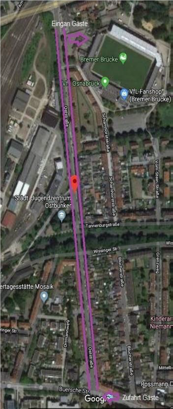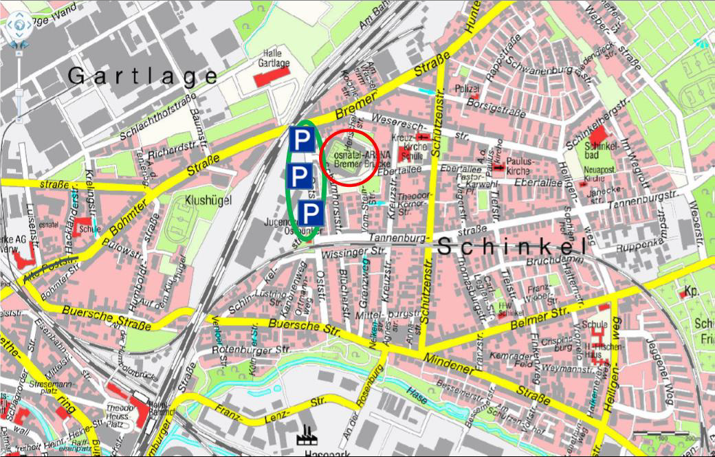 Weitere Parkplätze (u.a. Halle Gartlage) stehen nicht zur Verfügung bzw. werden nach dem Spiel aufgrund der Fantrennung nicht erreichbar sein.