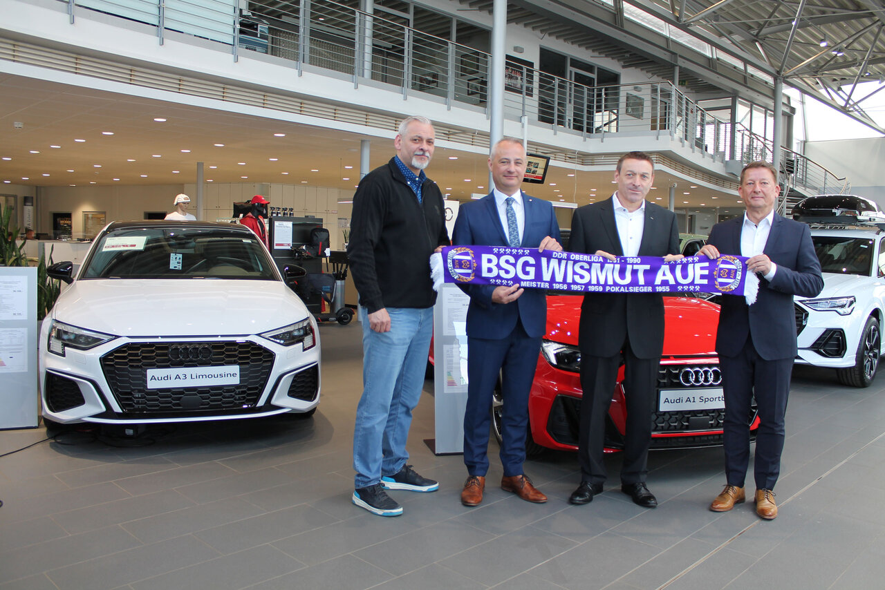 „Zum letzten Heimspiel der Saison möchten wir uns dem Kumpelrevier vorstellen. Das Spiel gegen Ingolstadt könnte besser nicht passen. Zwickau ist die Wiege von Audi, da fing die Geschichte der vier Ringe an, aber unser Markenkonzern hat seinen Sitz in Ingolstadt. Die Daumen drücken wir natürlich dem Verein, den wir ab sofort unterstützen”, fügt Kristin Kaufmann, die Marketingleiterin des Zwickauer Unternehmens, hinzu. Im kommenden Jahr werde Audi ein Produktfeuerwerk starten, auch dazu wolle man im Erzgebirgsstadion informieren. „Ich freue mich, wenn die Kumpelfamilie wächst, auch über das Erzgebirge und Westsachsen hinaus. Ronny Stierand kenne ich seit vielen Jahren, umso schöner, dass er uns mit seinem Team jetzt auch als Sponsor hilft”, sagt FCE-Marketingleiter Enrico Barth. „Stimmt, ich weiß noch, als Enrico selber auf Torejagd für die Auer gegangen ist”, erwidert Geschäftsführer Ronny Stierand. „Sport verbindet, Tradition verpflichtet. Deshalb möchten wir uns langfristig beim FC Erzgebirge einbringen. Zugleich stehen wir weiterhin zu unseren langjährigen Partnern in der Region: dem FSV Zwickau, den Crimmitschauer Eispiraten, zum Audi-Club Zwickau und zum Zwickauer Golfclub. Ebenso wie zum August Horch Museum, wo die fast 120-jährige Zwickauer Audi-Geschichte eindrucksvoll zu erleben ist.”