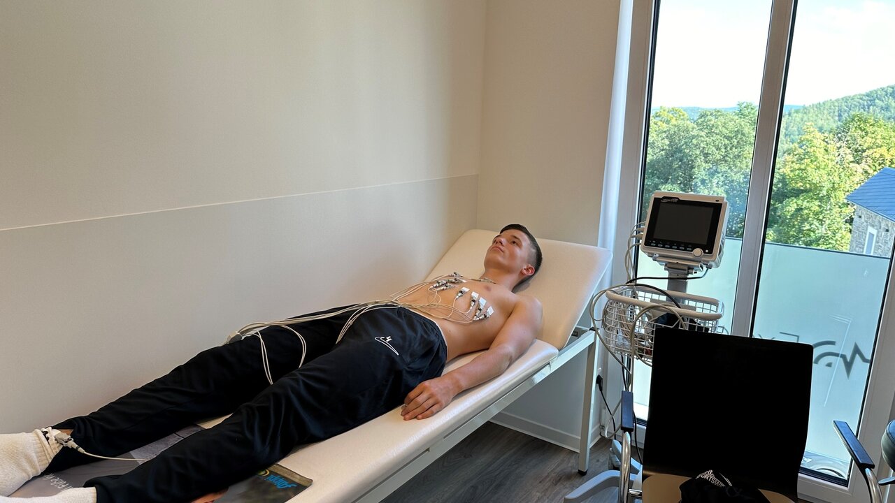 Nach Abschluss der orthopädischen Untersuchungen ging es für unsere jungen Veilchen in die hausärztliche Praxis „ExeloMed“ zum Team von Dr. Georg Illing. Hier ging es für unsere Jungs zuerst ins Labor. Ein Ruhe-EKG wurde ebenfalls durchgeführt und auf eventuelle Auffälligkeiten überprüft.