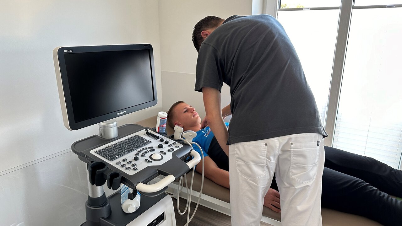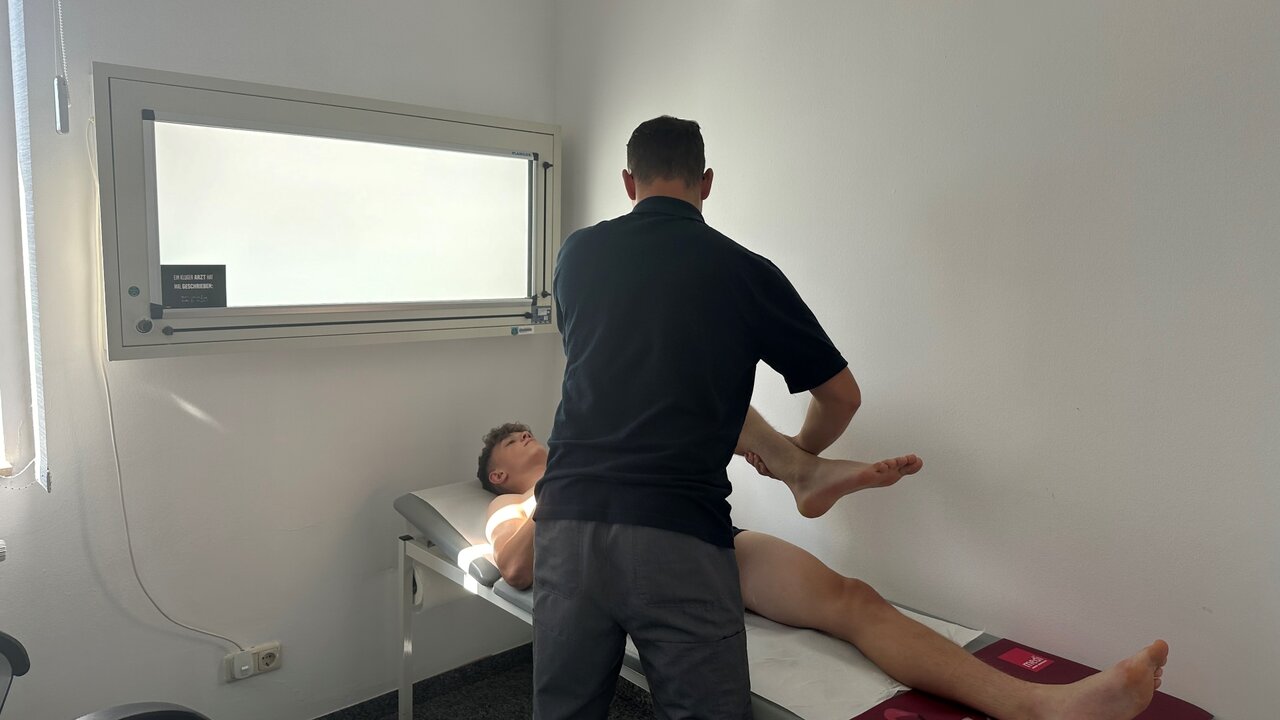 Teil eins der Untersuchungen findet in der Orthopädie Praxis Schneeberg statt. Dr. Martin Neumann und sein Team erstellen dort nach umfangreichen Testungen einen orthopädischen Befund der einzelnen Spieler. So wird u.a. die Mobilität und Stabilität der einzelnen Körperregionen überprüft. Beginnend mit den Schultergelenken, werden nach und nach verschiedenste Gelenke auf eventuelle Fehlstellungen geprüft. Die richtige Stellung der Wirbelsäule, die Flexibilität von Knie- und Hüftgelenken und die Überprüfung der Sprunggelenke sind dabei für Fußballer von enormer Bedeutung, weshalb auch diese genaustens unter die Lupe genommen werden.