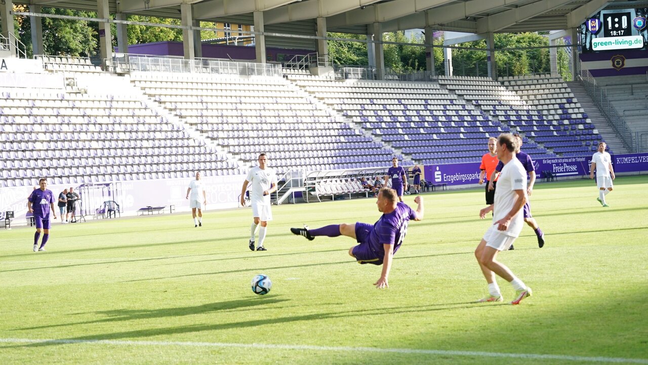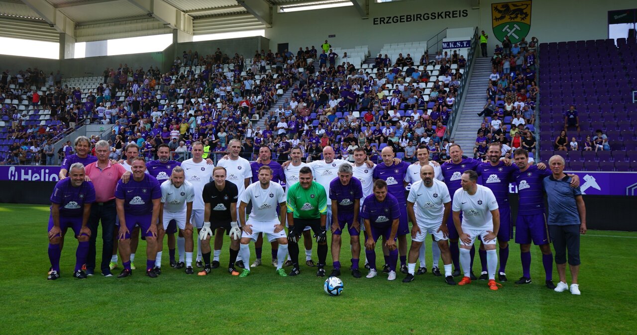 Am heutigen Donnerstag stand ein ganz besonderes Fußball-Highlight auf dem Programm. Das von den beiden Teammanagern Holger Erler und Jürgen Escher initiierte "Spiel der Legenden" lockte 1.046 Zuschauer ins Lößnitztal. Das Match fand im Rahmen der Festtage „850 Jahre Aue” und in Erinnerung an den ersten Zweitliga-Aufstieg vor zwanzig Jahren statt. Insbesondere wurde damit eine große Legende geehrt, die im Januar 2022 verstarb, bei den Auer Fußballfreunden jedoch unvergessen bleibt: Gerd Schädlich.