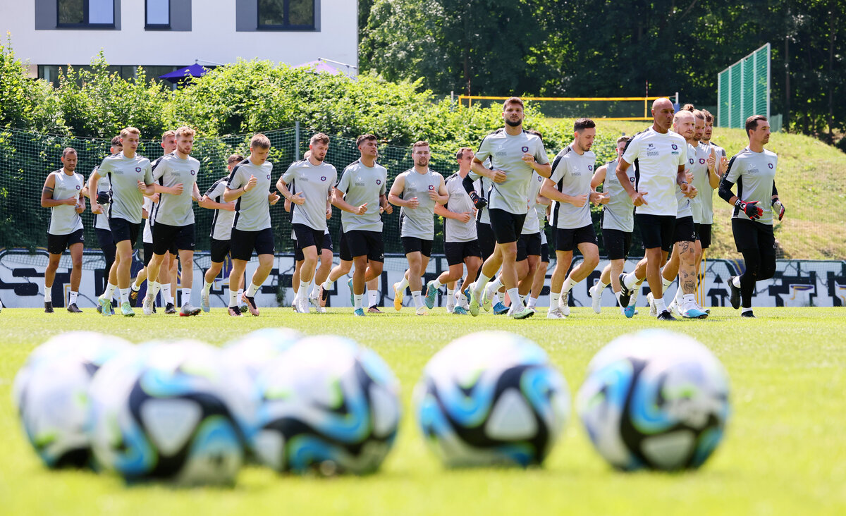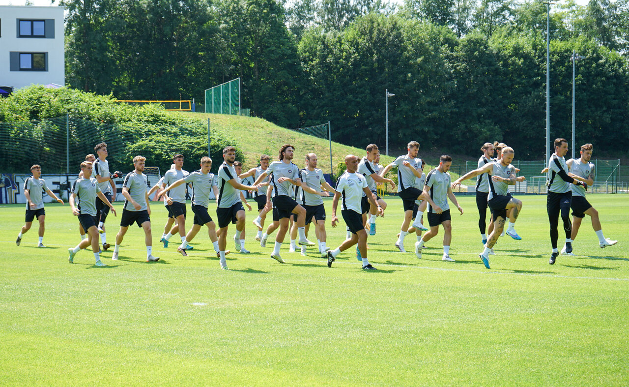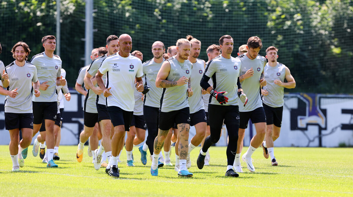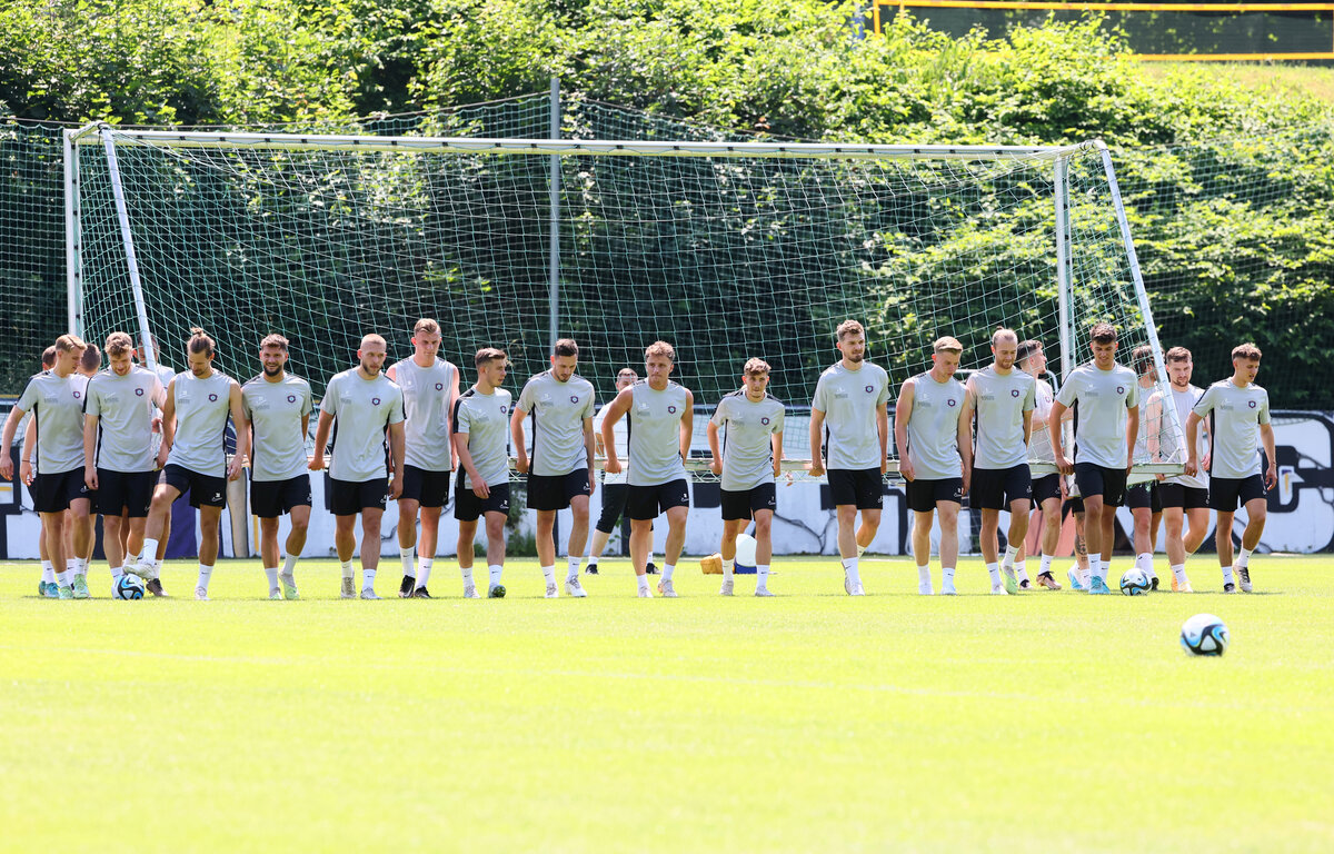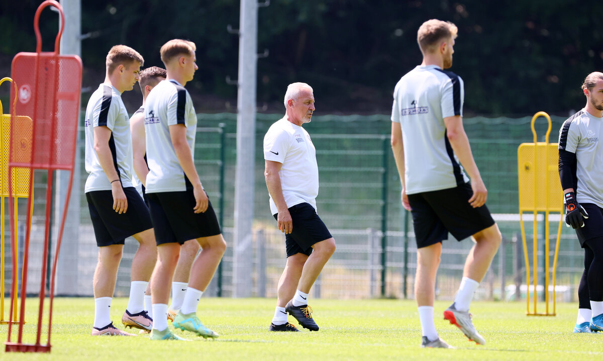 Trainingsauftakt bei den Veilchen: Pavel Dotchev begrüßt 26 Spieler vor 150 Zuschauern bei strahlendem Sonnenschein
