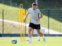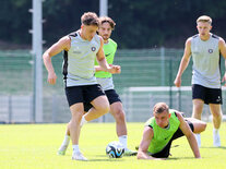 Acht Neuzugänge und drei Leihrückkehrer konnte der FC Erzgebirge Aue bisher vermelden. Natürlich waren auch sie heute auf dem Trainingsplatz dabei. Tim Kips (Leihrückkehr RW Koblenz), Luc Elsner (eigene Jugend), Ramzi Ferjani (Leihrückkehr Wormatia Worms), Niko Vukancic (Fortuna Düsseldorf II), Steffen Meuer (Borussia Mönchengladbach II), Marcel Bär (TSV 1860 München), Felix Göttlicher (Leihrückkehr Würzburger Kickers), Mirnes Pepic (SV Meppen), Sean Seitz (VfR Aalen), Joshua Schwirten (1. FC Köln II), sowie Louis Lord (SV Werder Bremen II) (v.l.) tragen ab sofort (wieder) das Trikot der Veilchen.