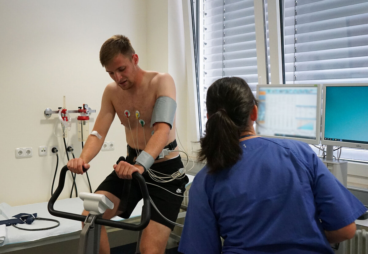 Der medizinische Check umfasst verschiedene Aspekte, die für die Spieler von Interesse sind. In erster Linie steht eine gründliche orthopädische Untersuchung im Fokus. Darüber hinaus beinhaltet die sportärztliche Untersuchung eine Leistungsdiagnostik. Mithilfe dieser Tests wird die körperliche Leistungsfähigkeit der Fußballer ermittelt. Hierzu gehört beispielsweise der Belastungstest auf dem Fahrradergometer. Die Ergebnisse geben Aufschluss über die Ausdauer, die maximale Sauerstoffaufnahme und weitere wichtige Parameter, die für die Trainingssteuerung von großer Bedeutung sind. Auf Basis dieser Daten können unsere Trainer individuelle Trainingspläne erstellen und Spieler gezielt fördern.