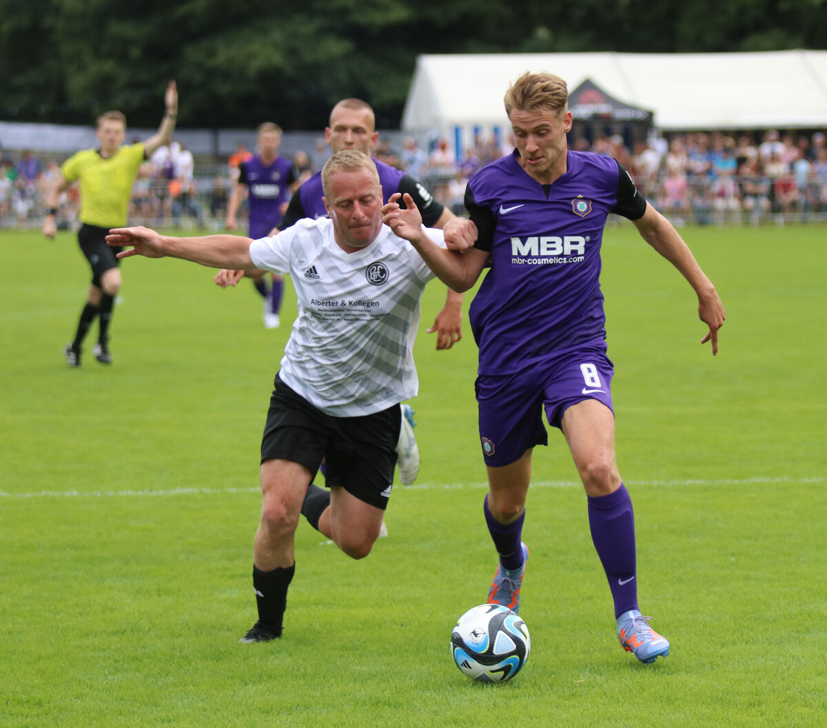 Die Veilchen, die erstmals im neuen Trikot spielten, kamen gut ins Spiel und ließen den Ball laufen. Sean Seitz eröffenete in der 15. Minute den Torreigen. Korbinian Burger, Marvin Stefaniak, Marcel Bär und erneut Sean Seitz trafen in der ersten Halbzeit und brachten die Veilchen mit 5:0 in Führung.