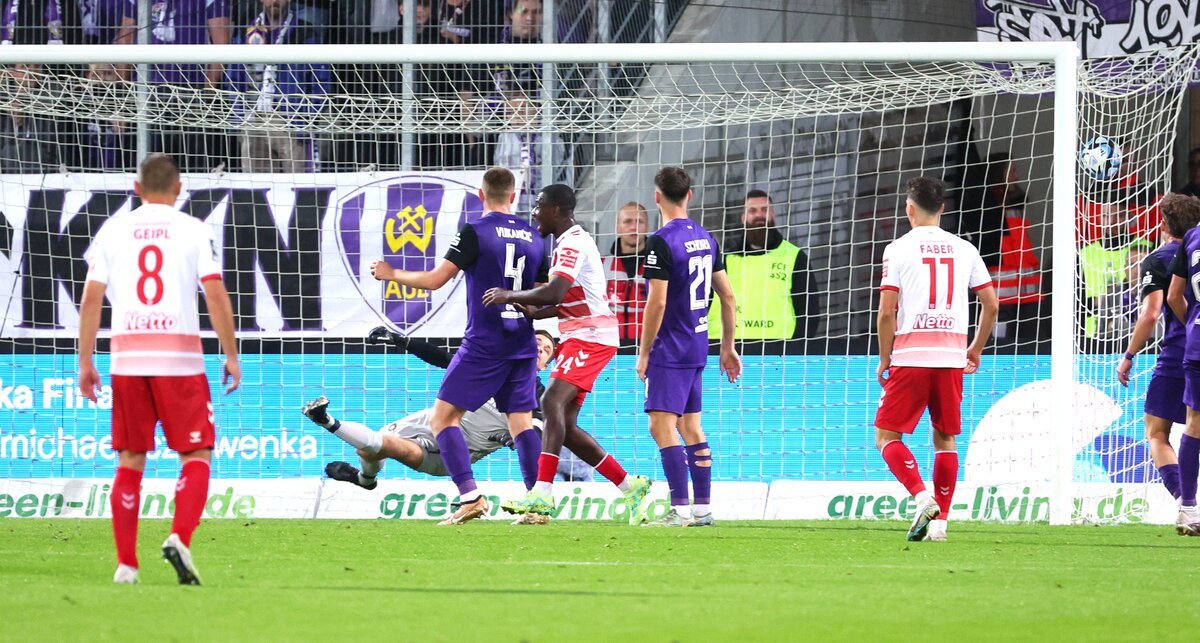 Aus dem Spiel heraus ging bei beiden Mannschaften wenig, aber der Jahn nutzte dafür einen Standard. In der 74. Minute zirkelte der eingewechselte Dominik Kother eine Ecke von links an den Auer Fünfmeterraum, wo sich Robin Ziegele gegen zwei Veilchen durchsetzen konnte und den Ball in die Maschen köpfte - 0:1.