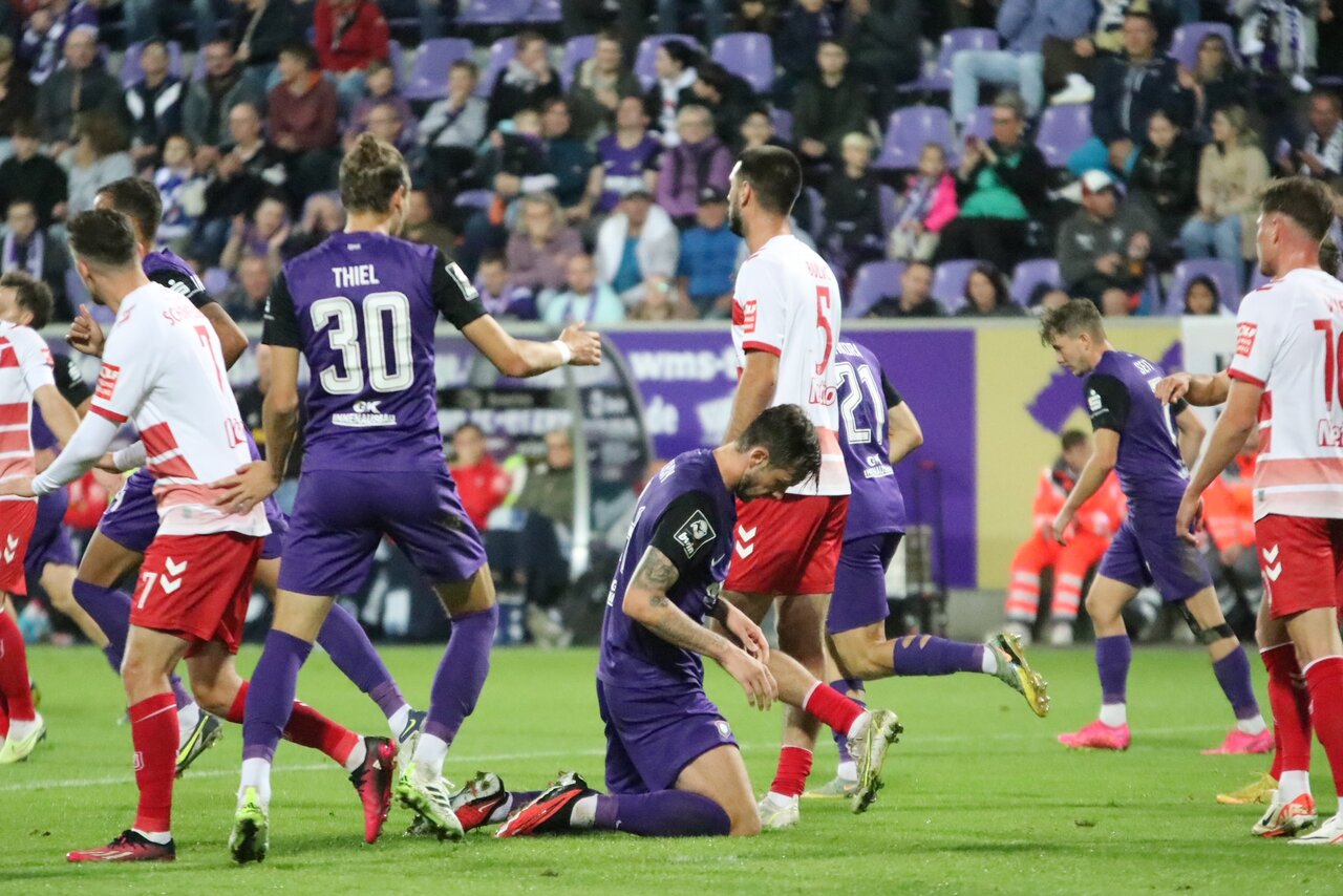 Drei Spiele hatten die Veilchen in dieser Spielzeit in der Schlussphase bereits gedreht, aber an diesem Abend war das Matchglück nicht auf der Seite der Auer. Der Jahn verteidigte seine Führung eisern und clever und auch mit fünf Einwechselspielern kamen die Hausherren nicht mit dem Ball in die Gefahrenzone. Die Veilchen gaben sich nicht auf, die durchschlagende Aktion wollte aber nicht gelingen. Erst in der 5. Minute der Nachspielzeit setzte sich Eigengewächs und Profi-Debütant Luc Elsner von seinen Gegenspielern ab und hielt aus gut 20 Metern auf das Tor. Sein flacher Abschluss setzte vor dem Kasten noch auf, doch wieder war Gebhardt zur Stelle und lenkte die Kugel um den Pfosten. Damit sicherte der Schlussmann die drei Punkte für den Jahn und besiegelte die erste Heimniederlage für die Veilchen in dieser Saison.