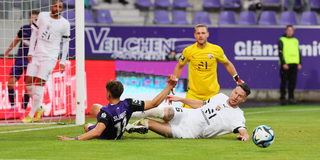 Die Lila-Weißen hatten in der Anfangsphase mehr Ballbesitz, kamen dabei aber kaum in den gegnerischen Strafraum. Mit einer gut organisierten Fünferkette standen die Ingolstädter in der eigenen Hälfte. So mussten es die Veilchen aus der Distanz probieren und den ersten gefährlichen Schuss gab ein Neuzugang ab. In der 20. Minute setzte sich Sean Seitz auf dem linken Flügel ab, zog nach innen und hielt aus gut 25 Metern Entfernung einfach drauf. Der Ball senkte sich perfekt, doch FCI-Keeper Marius Funk flog und lenkte das Spielgerät noch über die Querlatte.
