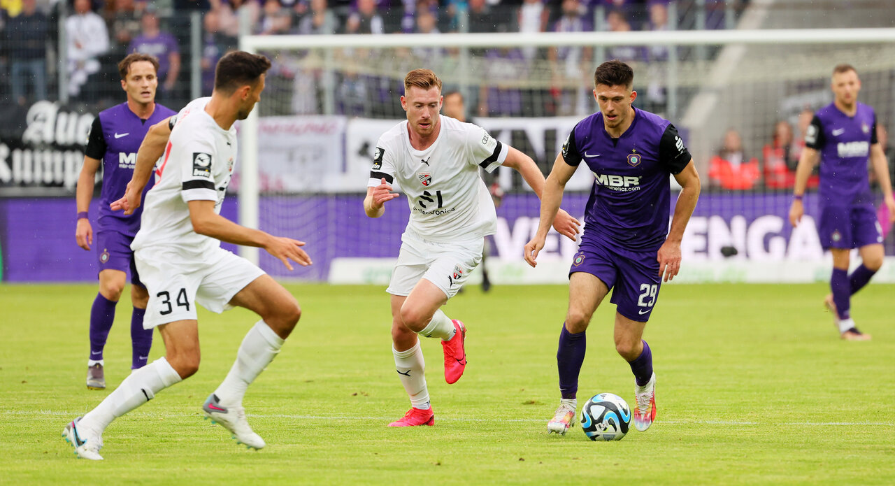 Gleich vier Sommer-Neuzugänge schafften den Sprung in die Auer Startelf. In der Abwehrzentrale bildete Niko Vukancic das Innenverteidiger-Duo mit Anthony Barylla, während Mirnes Pepic im Mittelfeld auflief und Sean Seitz und Marcel Bär im Angriff starteten. Mit Pascal Testroet stand auf der anderen Seite ein Ex-Veilchen in der Startelf der Schanzer. Der 32-Jährige spielte von 2018 bis 2021 in lila-weiß und erzielte dabei 37 Treffer in 99 Spielen.