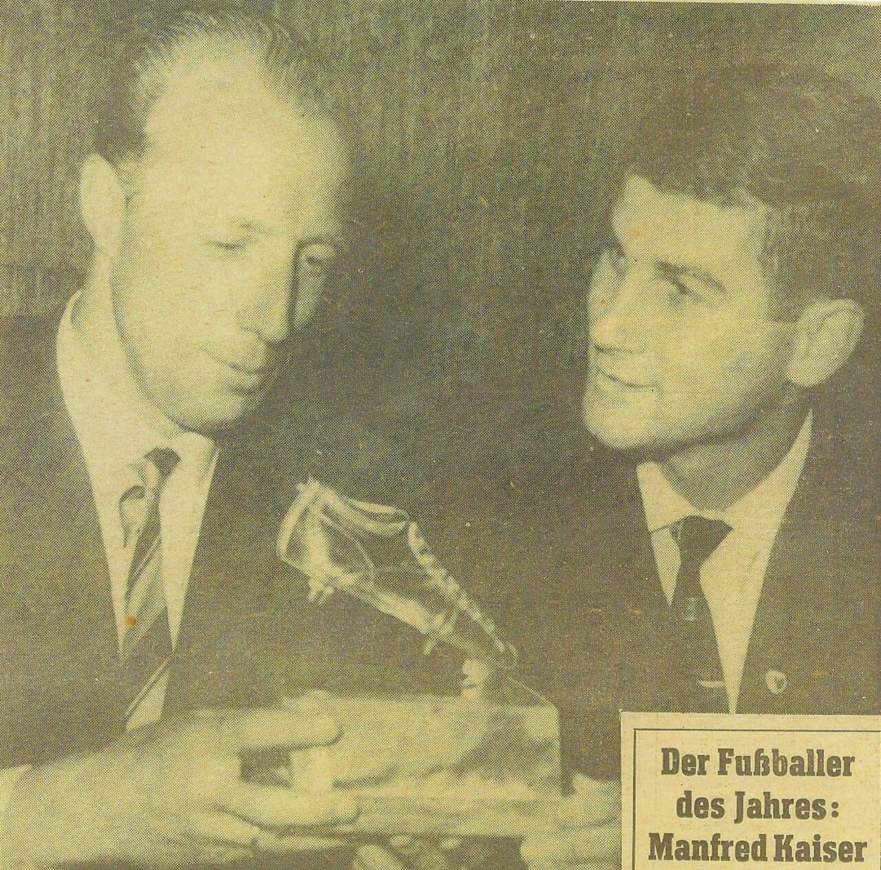 In der Sommerpause 1963 gab es zum ersten Mal in der DDR die Fu-Wo-Umfrage nach dem Fußballer des Jahres. Die Sportredaktionen aller wichtigen Zeitungen der Republik wählten jeweils ihre Favoriten der Saison 1962/1963 aus und die Fachzeitschrift Fußball-Woche ermittelte mit Hilfe einer Punktwertung das Endergebnis. Während dieser Abstimmung wurde am 2. Juni 1963 das Fußball-Länderspiel DDR gegen England im Leipziger Zentralstadion vor 90.000 Zuschauern ausgetragen. Der 34-jährige Mittelfeldakteur Manfred Kaiser vom SC Wismut war nach Meinung der anwesenden Journalisten der beste Spieler auf dem Platz. Neben seiner herausragenden Saisonleistung im Trikot der Auer Mannschaft hat das sicherlich mit dazu beigetragen, dass er die meisten Stimmen bekam. Für die Fu-Wo-Redaktion wurde „Manni” Kaiser mit dem „Silbernen Fußballschuh” absolut verdient geehrt. Seine Einstellung zum Leistungssport war stets vorbildlich, er galt als unermüdlicher Kämpfer und kluger Spieler, der immer hochkonzentriert wirkte. Auf den Plätzen zwei bis zehn folgten Peter Ducke (SC Motor Jena), Dieter Erler (SC Wismut), Kurt Liebrecht (Lok Stendal), Kurt Zapf (SC Empor Rostock), Roland Ducke (SC Motor Jena), Günter Schröter (SC Dynamo Berlin), Harald Fritzsche (SC Motor Jena), Werner Heine (SC Dynamo Berlin) und Klaus Urbanczyk (SC Chemie Halle). Bis 1991 führte die Fu-Wo jährlich diese Umfrage durch und Manfred Kaiser blieb der einzige Auer Spieler, dem diese Ehre zuteil wurde.