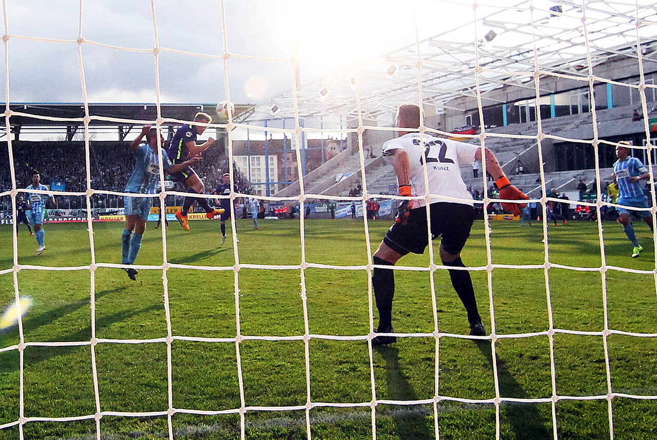 Vor über 12.000 Zuschauern entwickelte sich die Partie zu einem echten Schlagabtausch. Kvesic, Wegner und Adler hatten die ersten Chancen für unsere Veilchen und der CFC verpasste durch Fink und Dem die Chance auf das 2:0. Kurz vor der Pause übernahmen die Auer mehr und mehr die Spielkontrolle und in der Offensive platzte zum richtigen Zeitpunkt der Knoten. In der 38. Minute glichen die Veilchen aus, Skarlatidis flankte von der linken Seite ins Zentrum, wo sich Wegner im Luftduell gegen Conrad durchsetzen und einnicken konnte - 1:1.