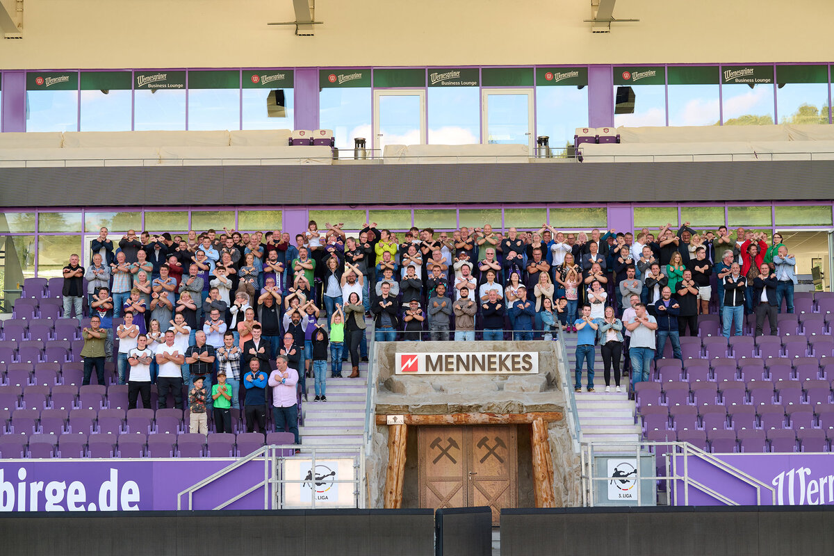 Nach dem erfolgreichen Saisonauftakt unserer Mannschaft gegen den FC Ingolstadt startete am Mittwoch darauf auch der Förderkreis (FK) mit einer gelungenen Veranstaltung. Sponsoren und Förderer unseres Kumpelvereins sowie das Drittligateam trafen sich am Abend des 9. August in der VIP-Lounge „Kumpelrevier” des Erzgebirgsstadions zum traditionellen Sommerfest. Dabei war Gelegenheit für die FK-Mitglieder, Spieler und Trainer sich in munterer Runde kennenzulernen. Der Förderkreis spendierte dazu ein leckeres Grillbüfett und kühle Getränke. Stadionsprecher Mario „Ewig” Dörfler moderierte die Gesprächsrunde, bei der unter anderem Sportgeschäftsführer Matthias Heidrich, Chefcoach Pavel Dotchev und Kapitän Martin Männel die aktuelle Situation erläuterten und sich für die Unterstützung der Sponsoren bedankten. Besonderes Interesse fand die Vorstellung der Spielerzugänge und Eigengewächse, die den Kader 2023/24 bereichern. Auch die Neuen im Trainerstab – Jörg Emmerich, Georgios Berneanou und Adam Susac – standen im Fokus der Gäste.